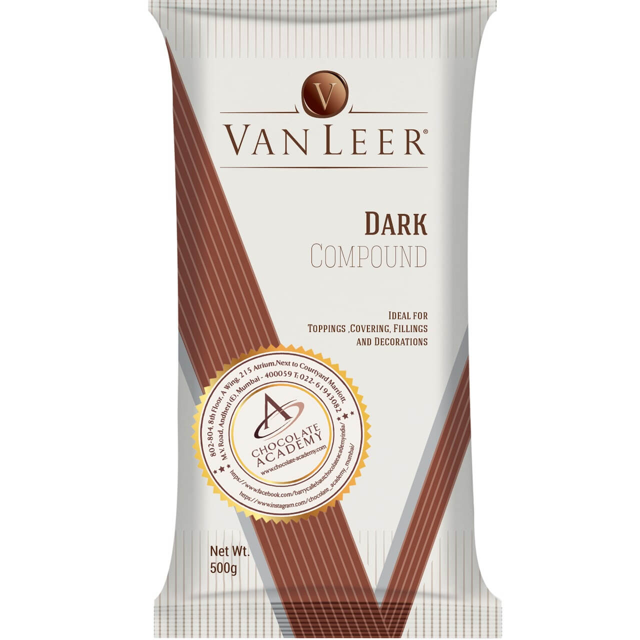 Vanleer dark compound chocolate is ideal for decorating , covering , moulding and garnishing. This can be also used to obtaing shavings to decorate your pastry creations.